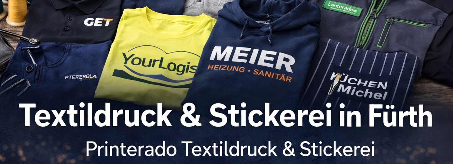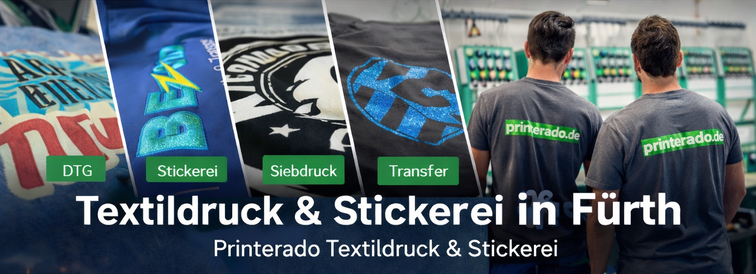 Printerado ist die regionale Adresse für hochwertige Textilveredelung: T-Shirts, Hoodies, Caps, Taschen, Arbeitskleidung und mehr – direkt in Fürth produziert, ohne Mindestmenge.